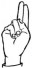 На ћирилици написано КОСТАДИН ЂОРЂЕВИЋ састоји се из 16 слова [?]. Исписано ћириличном једноручном азбуком за глувонеме:
